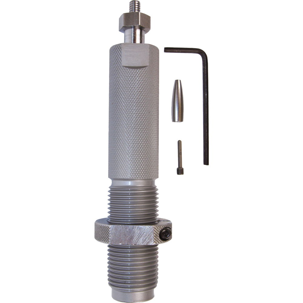 Die universelle, kaliberunabhängige Ausstossermatrize stößt nur den Zünder aus, ohne die Hülse in irgendeiner Form weiter zu bearbeiten. Beispielsweise bei gecrimpten Militärhülsen oder zur Vorbereitung der Hülsen zur Reinigung.