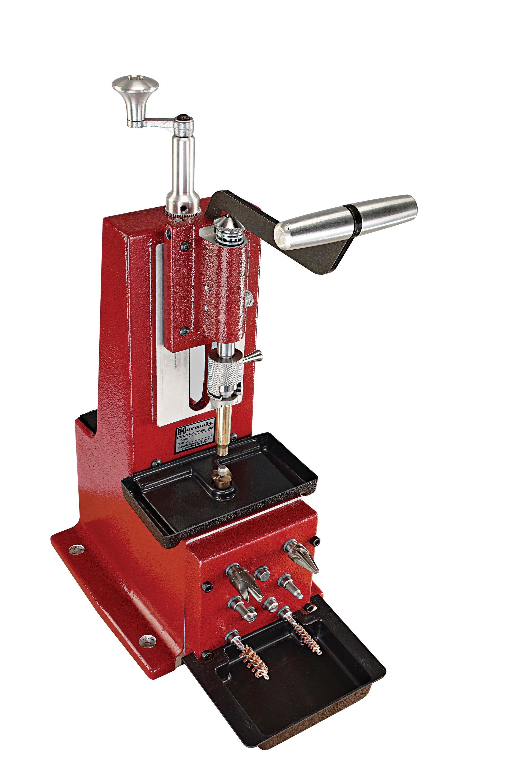 Seine All-in-One-Vielseitigkeit kombiniert einen Power-Trimmer mit Entgratungswerkzeugen, großen und kleinen Zündglockenreiniger und sechs gängigen Halsbürstengrößen (.22, .25/6 mm, .270/6,5 mm/7 mm, .30, .35 und .45) und Piloten in denselben Kalibern. Enthält auch die Hülsenhalter 1, 2, 5, 16 und 35.