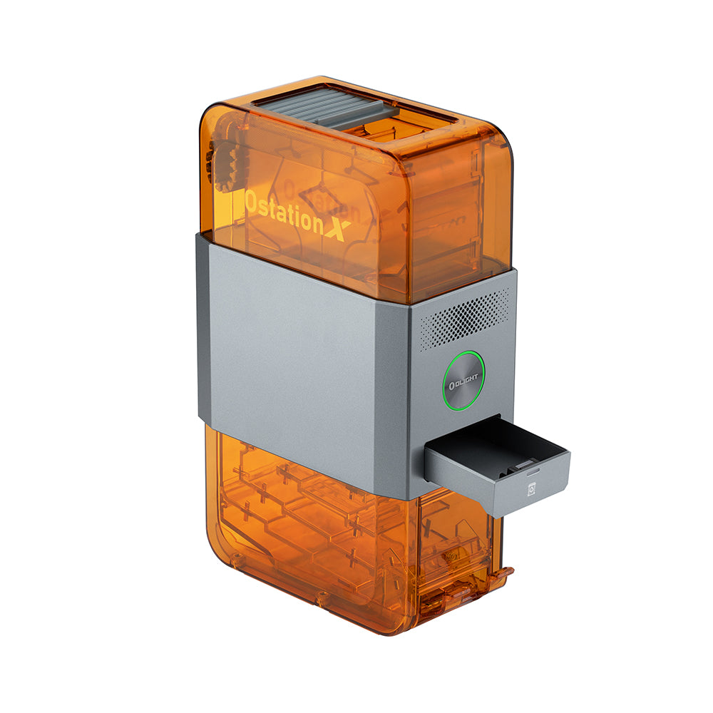 ● Überwachung in Echtzeit: Verfolge den Ladevorgang, verwalte die Akkureserven und wähle den Lademodus über die Olight App.